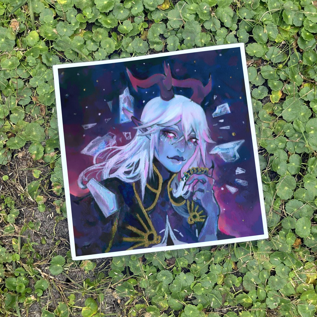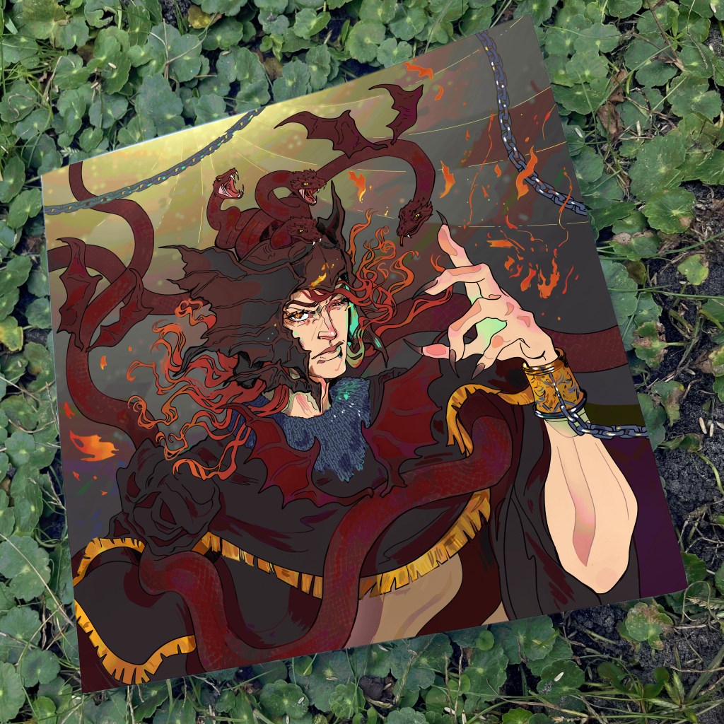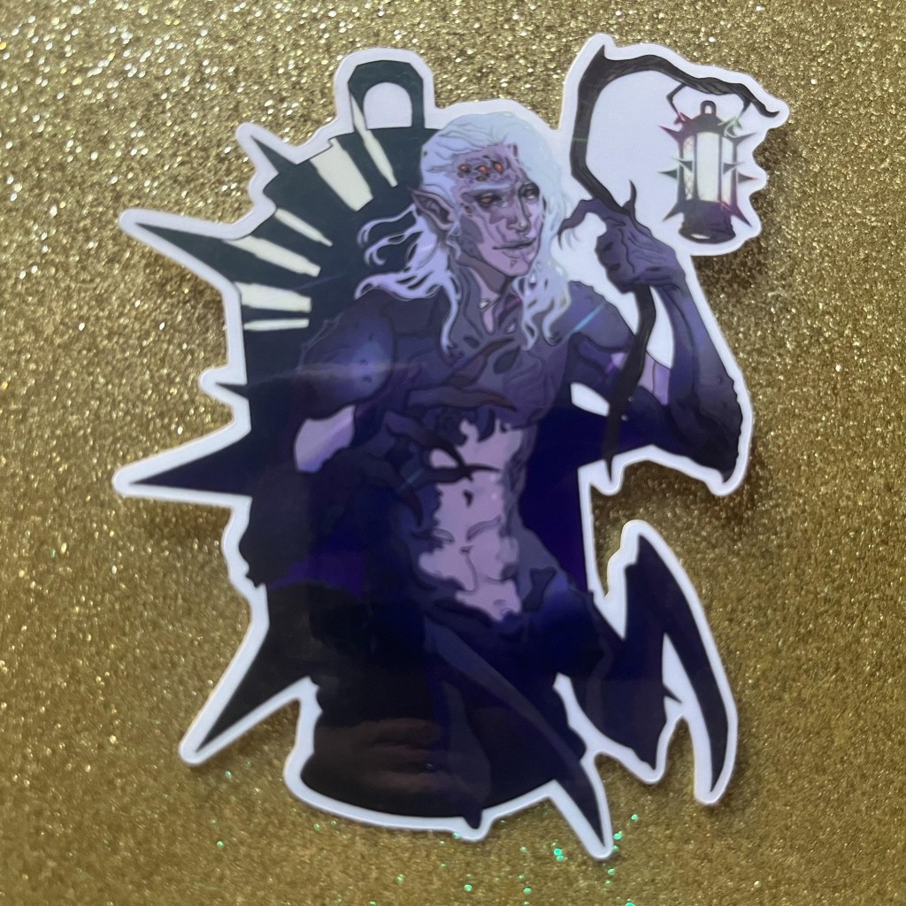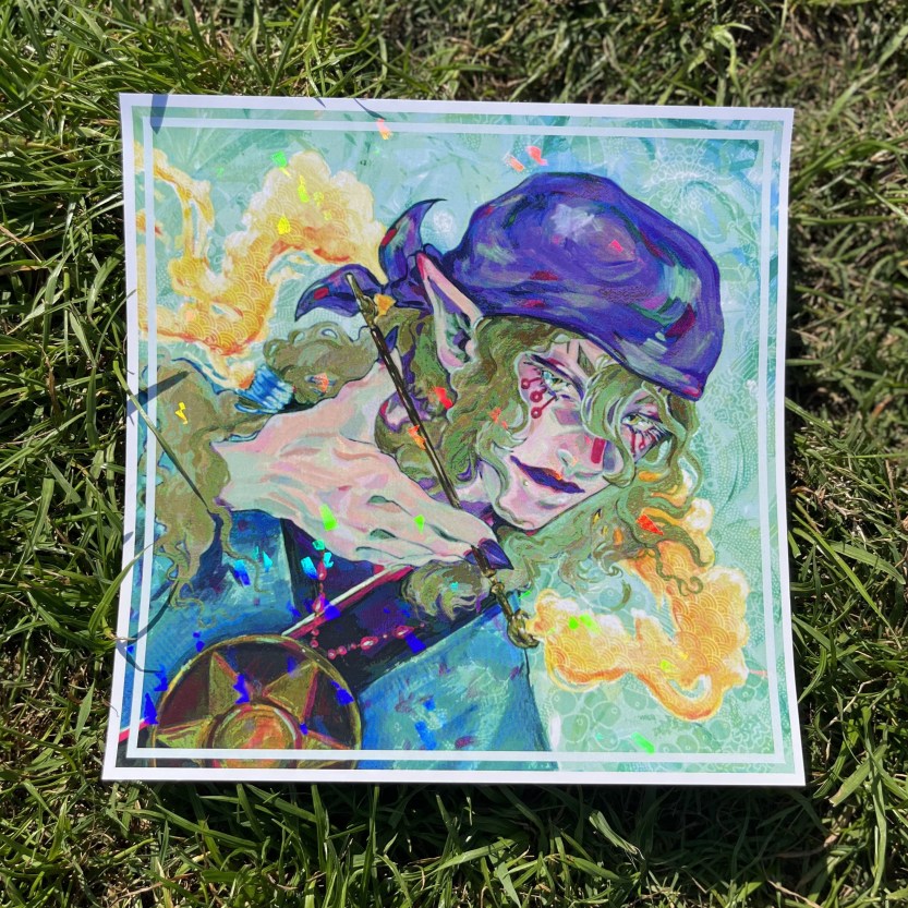 A 5” by 5” mini print to show your love of Mollymauk, this holographic print matches the Essek mini print just in case your love of critical role expands. Long May He Reign