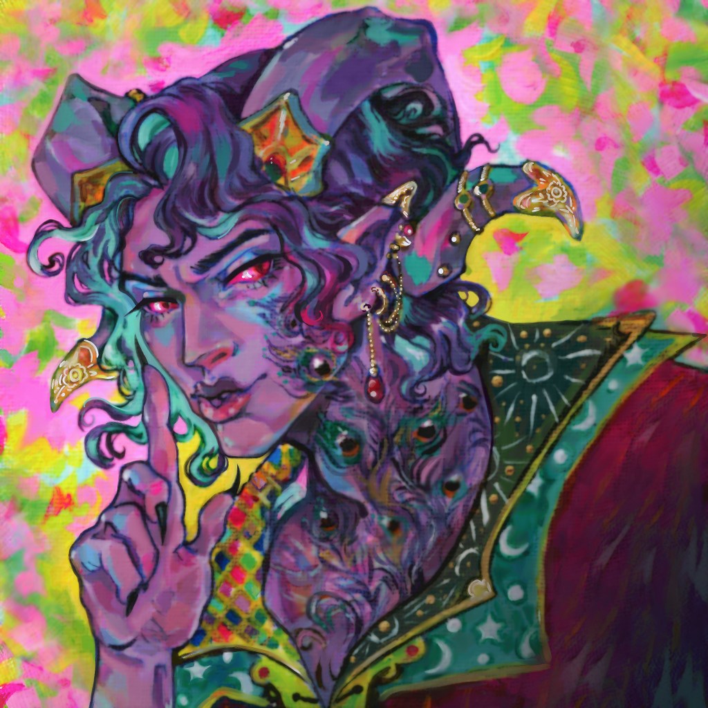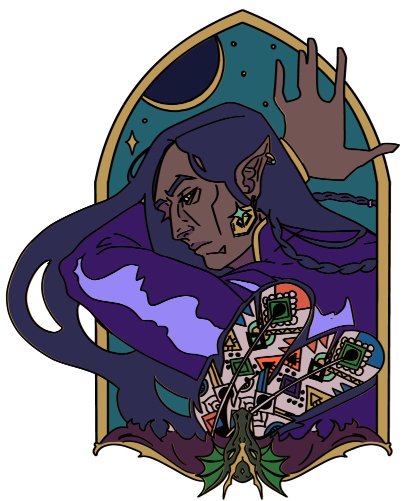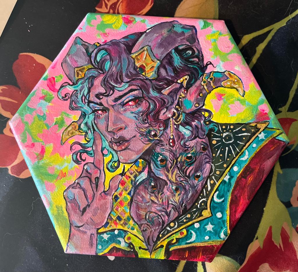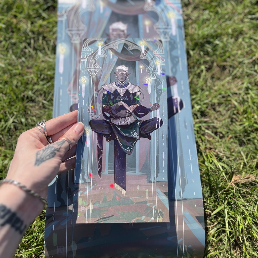 A 5” by 5” mini print to show your love of Mollymauk, this holographic print matches the Essek mini print just in case your love of critical role expands. Long May He Reign