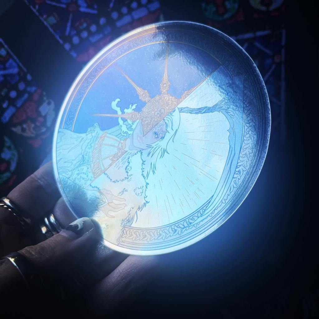 The age of fire slowly fades as one child of Gwyn’s legacy makes illusions and the other pretends to be invisible. This 5” circular mirrored sticker is meant to mimic a looking glass like the nights of Anor Londo.