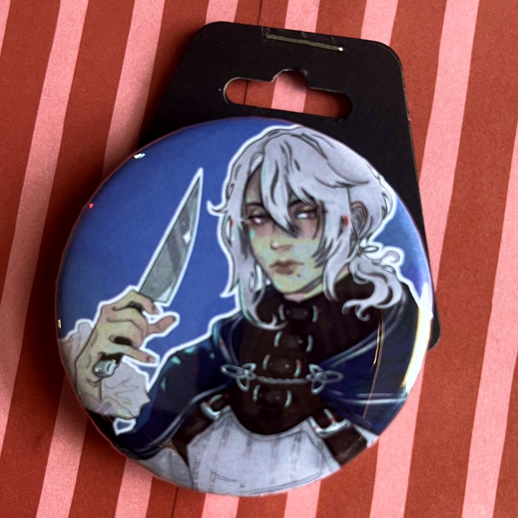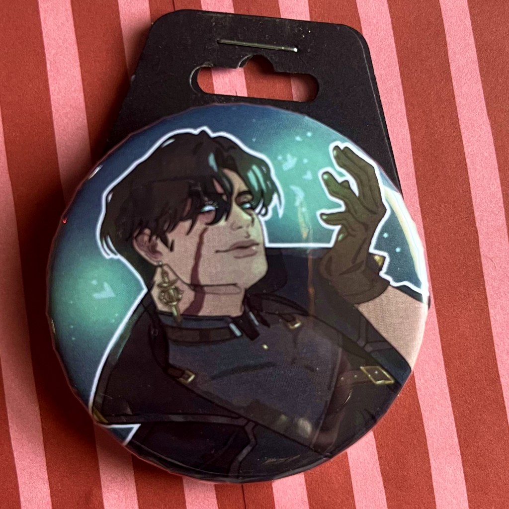 For those also cursed with a deadly touch. This button set won’t cure you, but it will look nice inside an ita bag; or give it to your friend, something bloody to fawn over.