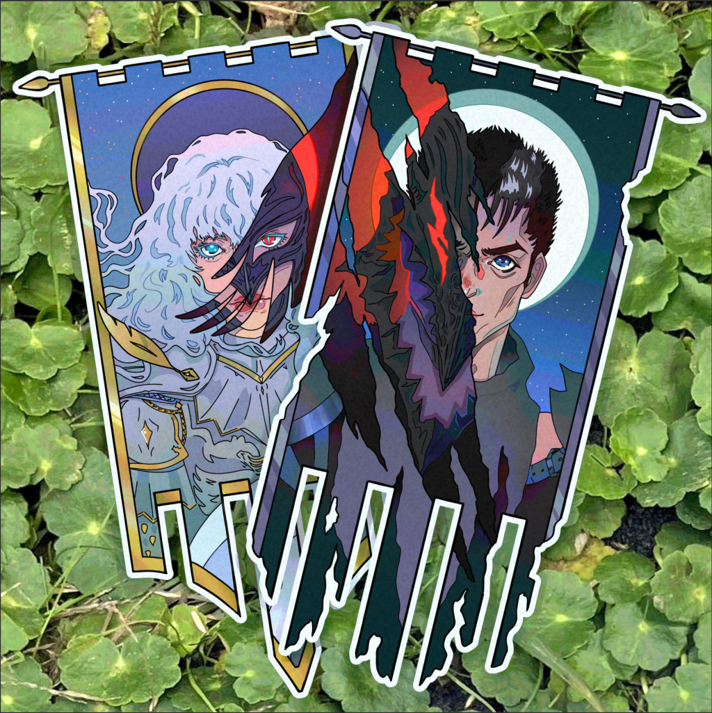 Torn tapestries and twisted fates, a commemoration set for the passing of the one of the best manga artists. A semi-foil sticker set 4″ by 3″