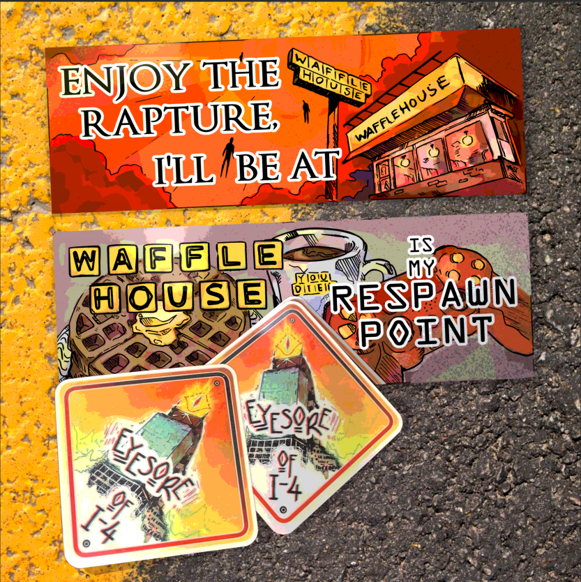 Four high-tac bumper stickers paying tribute to the roadways, they ‘ll go great on your Subaru while you’re on the way to 2am breakfast
