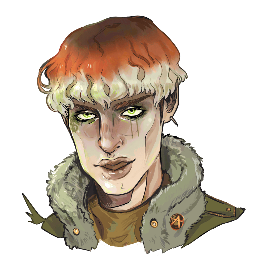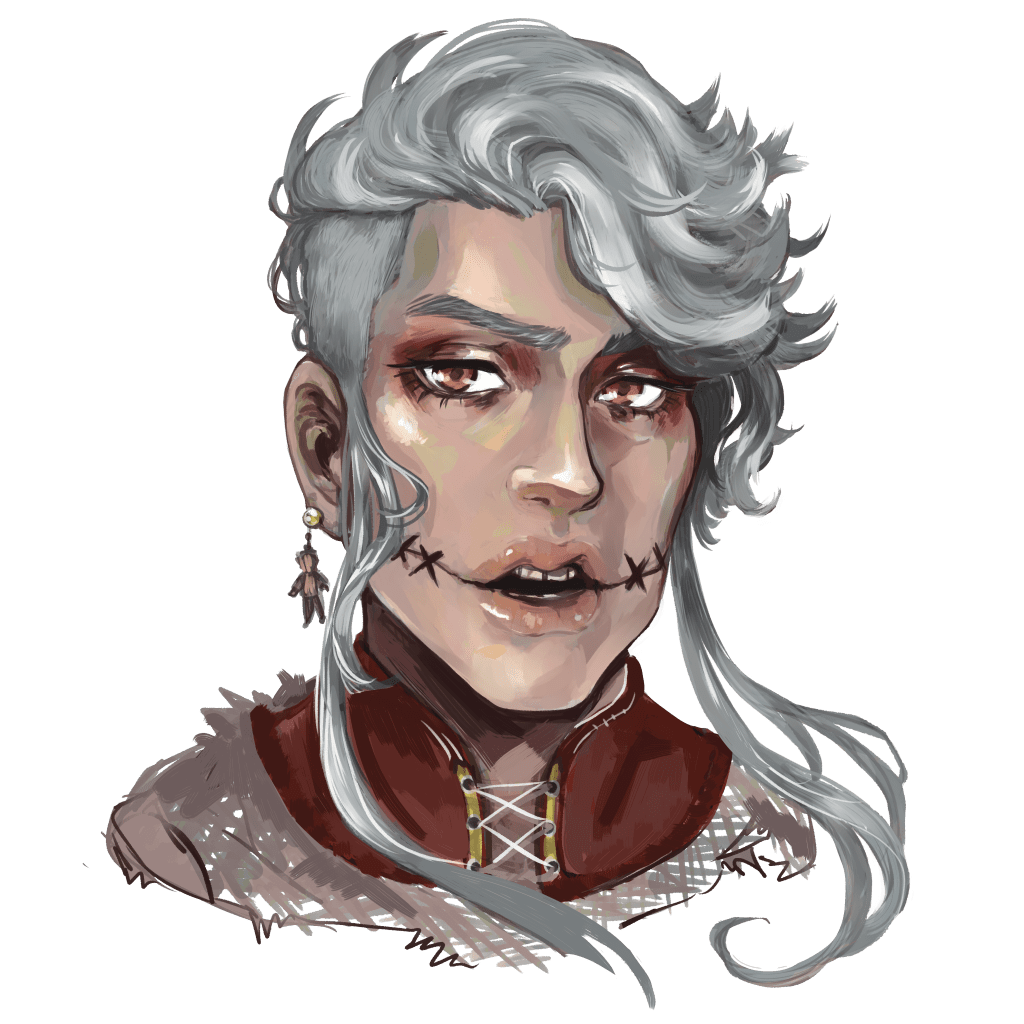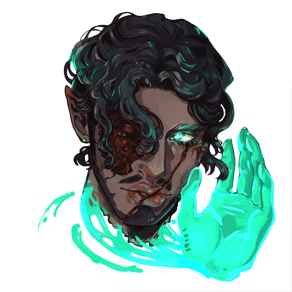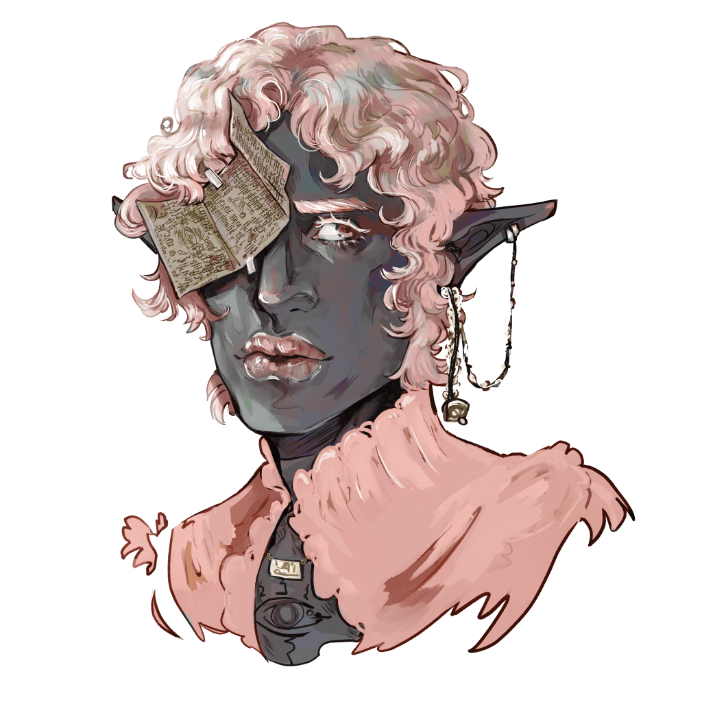 An underground city, a library of forbidden tomes, and a jail cell increasingly moving further and further away. Despiviir has known these three things about his life for a seemingly never ending length of time. Until a voice started echoing to him, explaining an old history that the civilisation he lived in completely forgot and promising him power if he began to bring it back. Since being imprisoned as a child for disrespecting the god his city worshipped it seemed like a good enough deal. With his new friend at his side he started to adorn himself in his favourite colours that were always forbidden and collecting offerings. His practices require a certain amount of firepower and after breaking free of containment and retrieving tomes needed to learn this magic, he torched the entire library to the ground. Of course one new warlock is no match for a trained army of priestesses and his defiance only landed himself back in a cell. But he did manage to get one treasure on his way out, a stolen eyeball he’s begun to call ‘mother’. Guards pacing by his cell often report hearing him talking to it in a strange tongue and the smell of singed flesh.